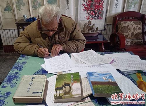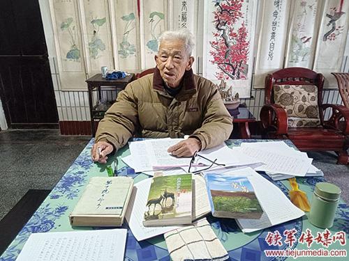邹迎柯正在校对修改稿件